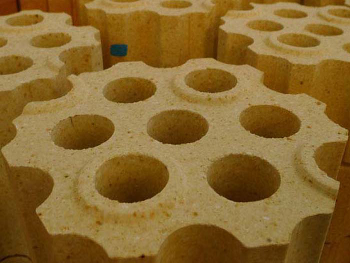 高鋁孔磚也可以稱作熱風爐格子磚,是目前被世界煉鐵界廣泛認同和接受的一種熱交換能力強、蓄熱面積大、通氣順暢、阻力小等諸多越熱工特性的載熱蓄熱體,常用于熱風爐。高鋁孔磚是一種傳熱介質(zhì),主要用在熱風爐蓄熱室中上部,起蓄熱作用。在把冷風加熱成熱風的過程中,起著其重要的作用。